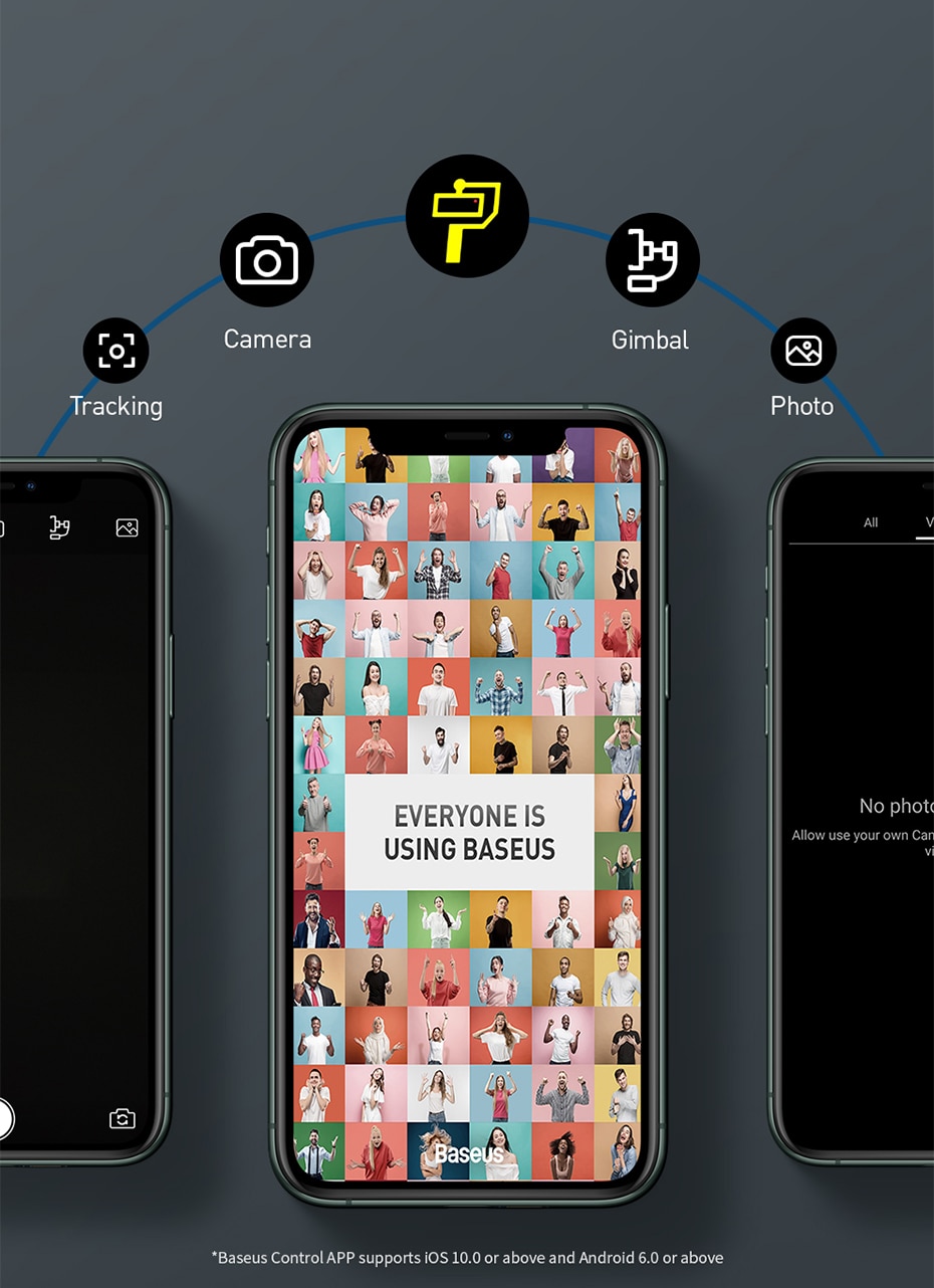 Enjoy shooting moments by using multiple intelligent functions expanded through the APP ************************************** Search “BaseusControl” ,download on your phone. Baseus Control APP supports iOS 10.0 or above Android 6.0 or above