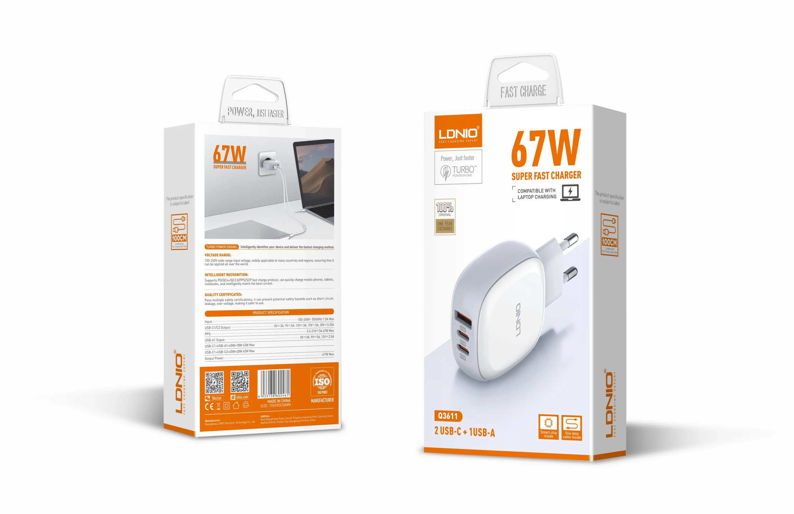 GaN Tech] LDNIO Q3611 67W 3-Port USB PD Charger USB-A+Dual USB-C