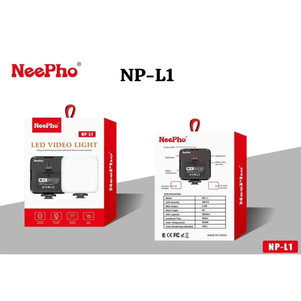 - The NEEPHO Video Light has a battery compartment that allows users to replace the batteries when needed, ensuring that the light can be used for an extended period. The battery door lock strip ensures that the batteries are securely in place, preventing accidental discharges or leaks. The hot shoe interface allows users to attach the light to their camera or other equipment, making it easy to capture footage or take photos in different settings. It has 49 pcs of LEDs.