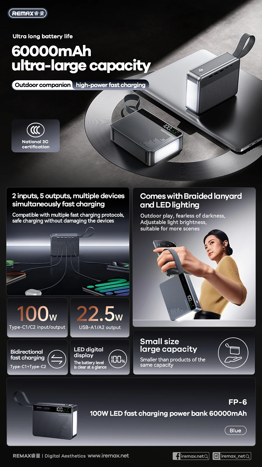 REMAX 100W LED light fast charging power bank 60000mAh FP-6