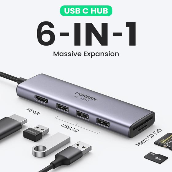 UGreen 20954 Type-C To HDMI+2 Port USB3.0+Card Reader Multifunction Hub